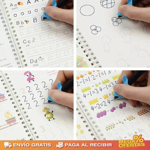 📚 SET 4 CUADERNOS CALIGRAFIA, MATEMATICAS, DIBUJO, ALFABETO PARA NIÑOS